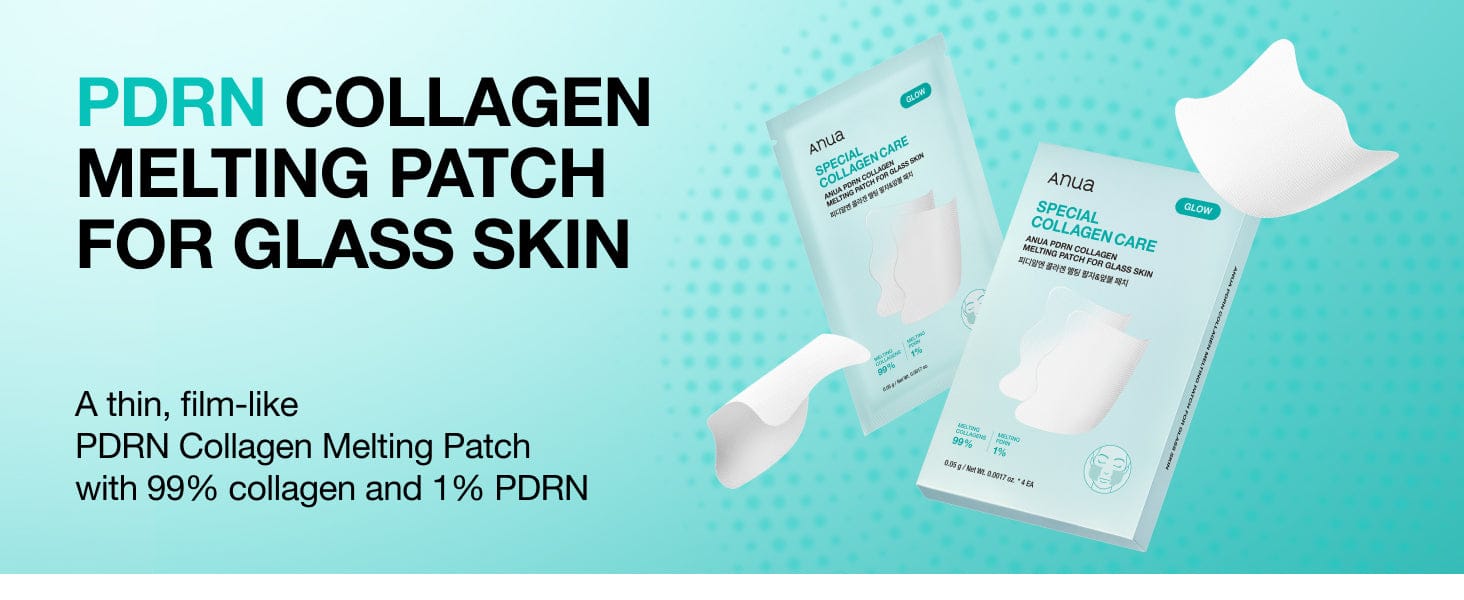 - Infused with 99% collagen and 1% PDRN to help youthful-looking skin and improve firmness* and youthful-looking *P&K Skin Research Center, A clinical study of ANUA PDRN COLLAGEN MELTING PATCH FOR GLASS SKIN and ANUA PDRN COLLAGEN MELTING PATCH FOR NECK to assess skin radiance(glossiness), participants=21 (Adults aged 20–59, female), 2025.10.14 ~ 2025.10.15